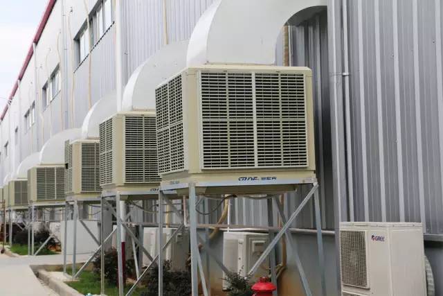 这批环保空调共20台,当室外温度在35℃以上,空气湿度为65%-80%以上时,环保空调就会进行送风,出风口温度比室外温度低4-10℃,散射降温面积1平方米左右,经环保空调过滤降温后的清新凉风将源源不断地送入车间,同时将车间内的高温闷热的热空气从门窗挤压到室外。